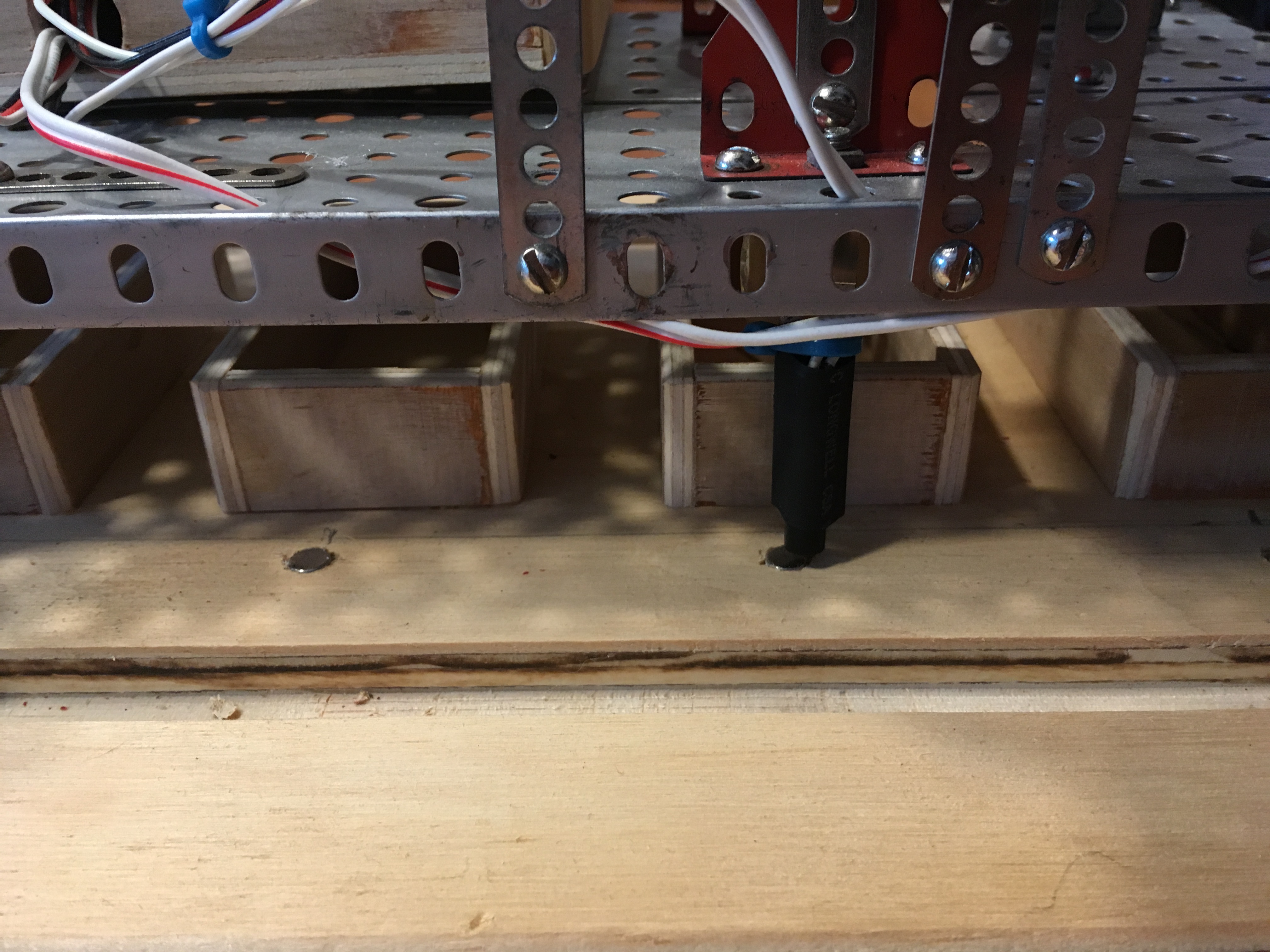 Determining Robot Location/Bins: For the proof of concept the robot track was outfitted with 5 bins. 4 were for 4 different resistor values determined by the user and the fifth is “everything else”. In order to determine the robots location relative to the bins the board the robot had a read switch on it. On the board were neodymium magnets. So the robot would keep track of how many boxes it had passed. The only issue with this method was overshoot. To fix this the resistor dropper was slightly modified and the driving speed was slowed down a bit.