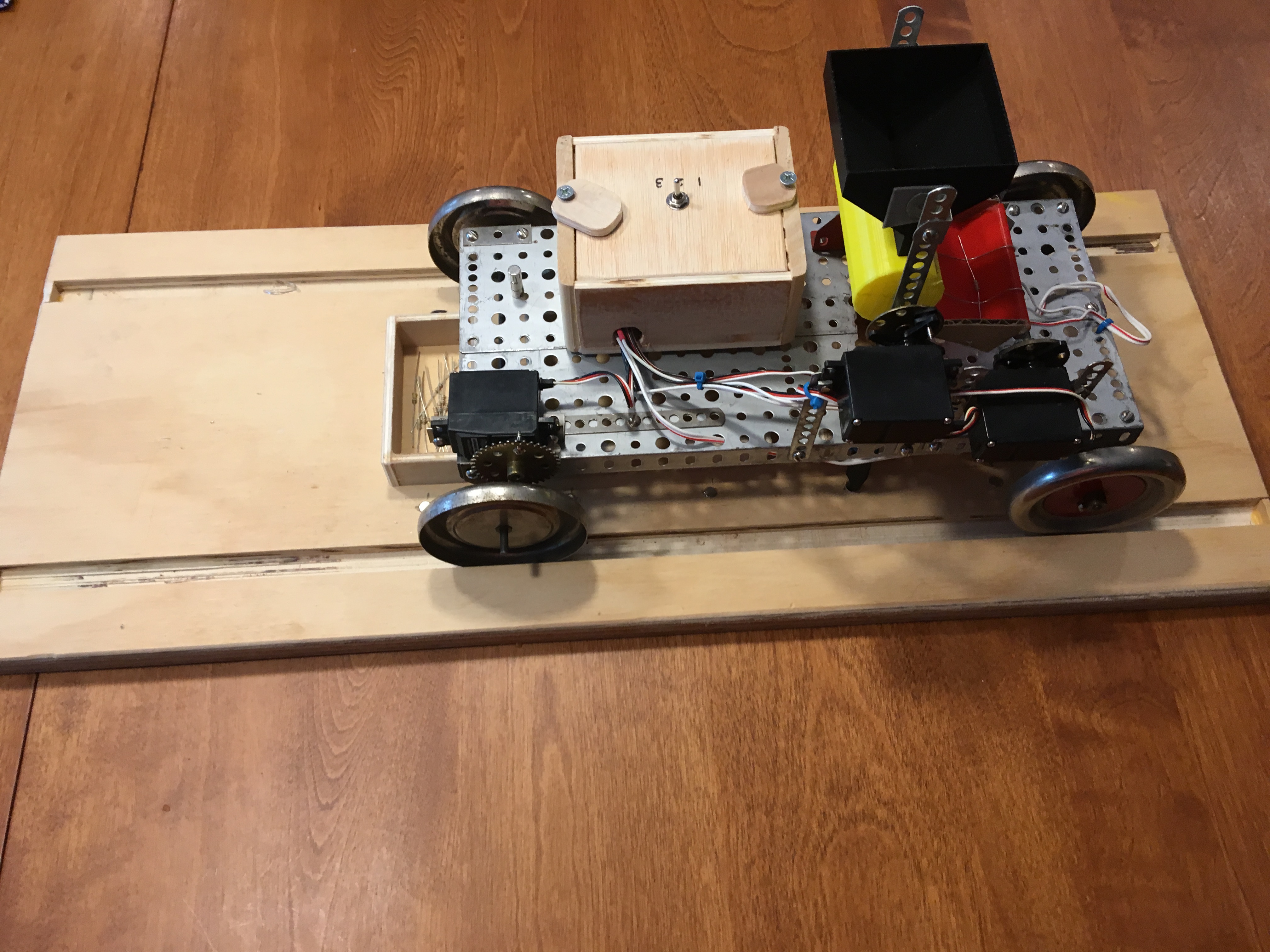 At this point it was also decided the main frame of the robot would be made from erector parts, and be controlled with an Arduino Uno